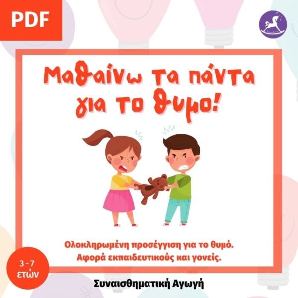 To συγκεκριμένο υλικό διαχείρισης θυμού για παιδιά από 3 έως 7 ετών είναι μια προσεγμένη προσέγγιση που μπορεί να βοηθήσει γονείς και εκπαιδευτικούς να συζητήσουν, δουλέψουν αλλά και διαχειριστούν το συναίσθημα του θυμού στα παιδιά καθώς και όλες τις ανεπιθύμητες ενέργειες του.