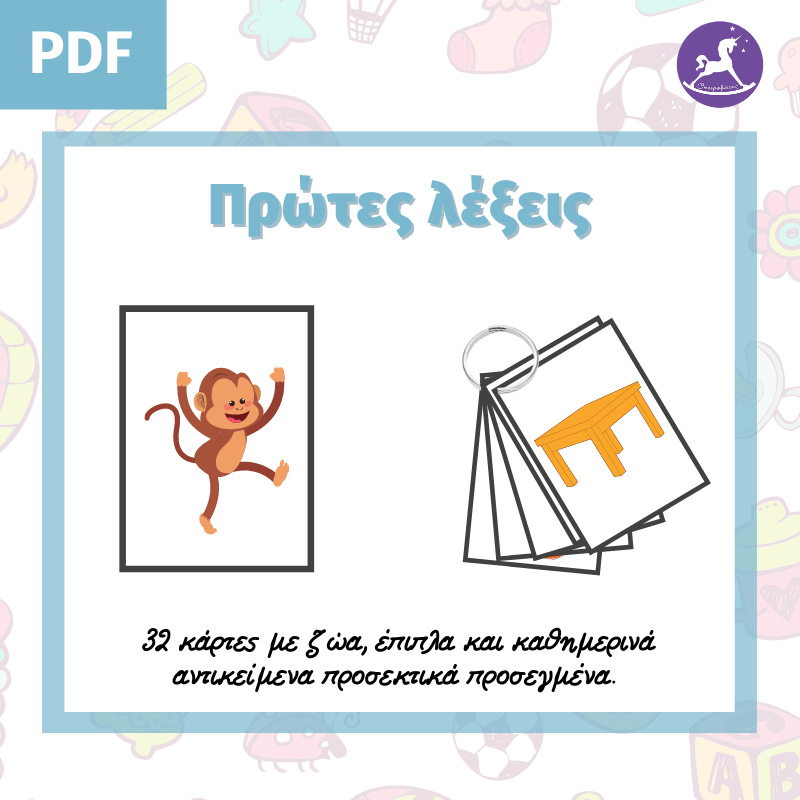 - 32 κάρτες με εικόνες ζώων, επίπλων και καθημερινών αντικειμένων