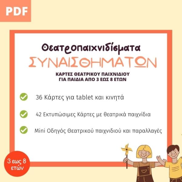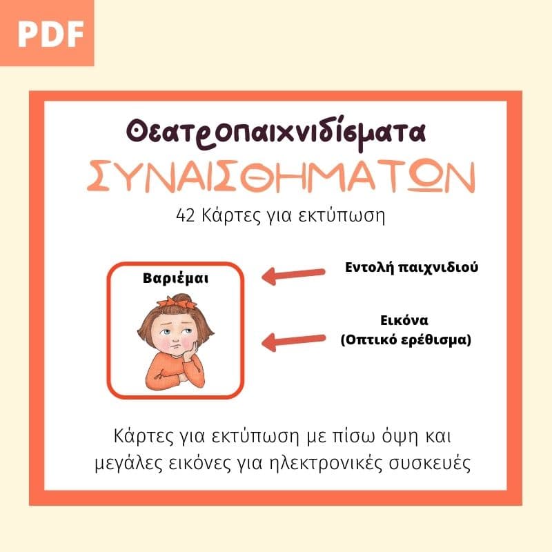 Οι κάρτες αποτελούν ένα μοναδικό βοήθημα στο σχολείο και το σπίτι. Τις χρησιμοποιούμε τουλάχιστον 5 χρόνια πριν τις παραστάσεις μας καθώς και στο τέλος, αφού συζητάμε με τα παιδιά για τις συναισθηματικές καταστάσεις των ηρώων. Θα εκπλαγείτε πόσο πολύ τις λατρεύουν τα παιδιά και πόσο το συναισθηματικό τους λεξιλόγιο αυξάνετε μέρα με τη μέρα!